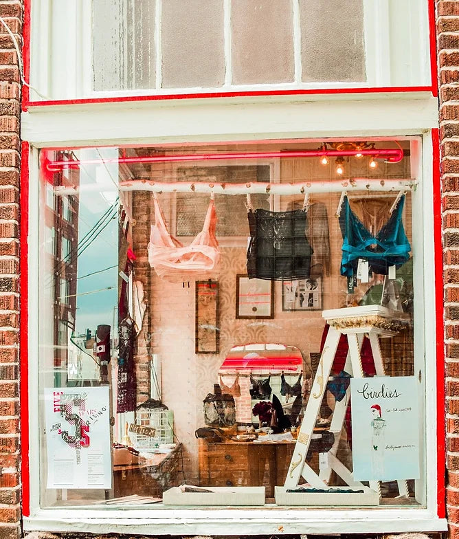 We are here to assist you in finding your size in your preferred style. Our bras, panties, stockings, garter belts, swim, resort, lounge, and adult accessories are all hand-selected, seasonally-curated and arranged in a body-positive, casual and beautiful environment. Shopping at Birdies is an elegant, inclusive, and relaxing experience.